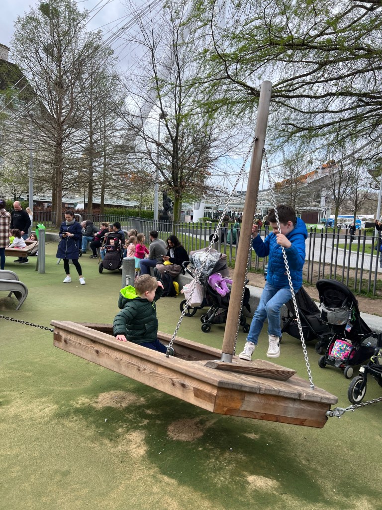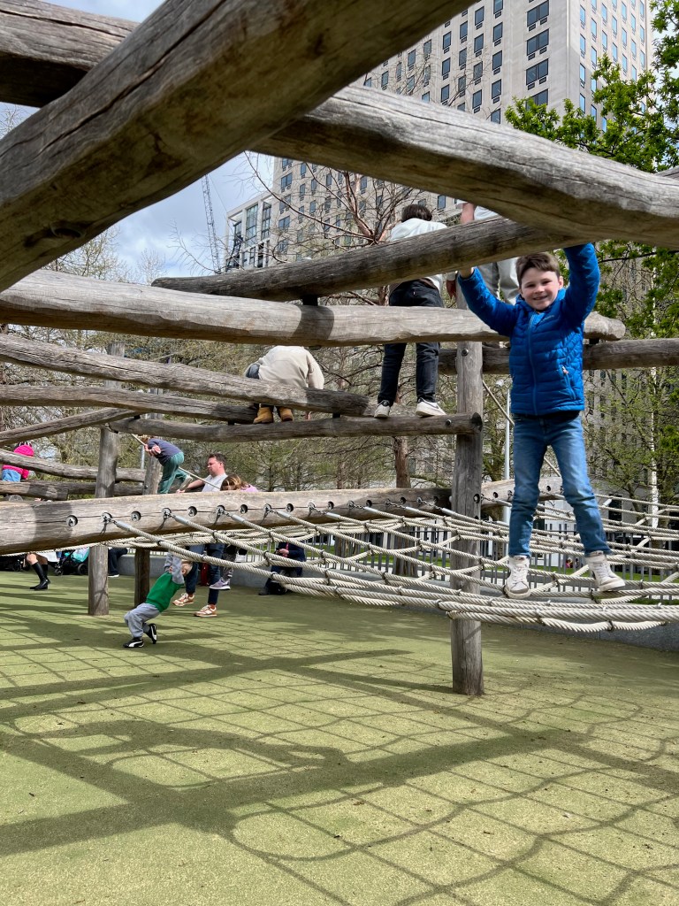 The kids found a sweet playground next to the London Eye, called Jubilee Gardens. It was crowded on this Sunday (and again over school holiday when we came back 5 days later). It is a nice place to get some fresh air and allow for some climbing/running around between sight seeing. Highly recommend.