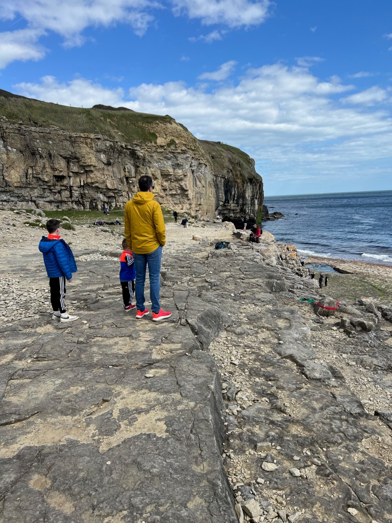 Just wow. The Jurassic Coast is a 95-mile stretch of BEAUTIFUL land along the southern coast of England. It is a UNESCO World Heritage Site and is named the Jurassic Coast because of the presence of fossils that can be found here from the Jurassic period. We set out to see the ocean, dinosaur footprints, and fossils… and man… did we conquer. It took us about 2.5 hours to reach our first stop, Spyway. Spyway is home to sea cliffs, preserved brachiosaur footprints, and puffins, amongst many other things. We hiked to the footprints and then down to the cliffs. We watched people go on expeditions to cave dive and to swim in a natural pool in the rocks by the ocean. We hoped to see the puffins nesting in the cliffs but were unlucky this time around.