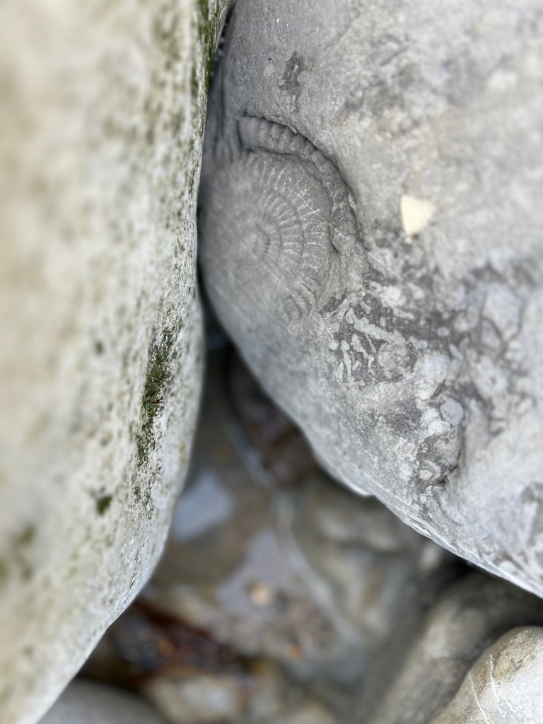 After this gem, we headed to Lyme Regis in hopes to find some fossils. We chose to go to East Cliff Beach, where Mary Anning, a famous fossil collector, found her first Ichthyosaur fossil. We had views of Black Ven, the largest mudslide in Europe along with the Spittles, which were the cliffs directly behind the beach. East Cliff Beach was filled with hopeful fossil finders. People brought hammers and other various tools and, on occasion, you would hear shouts of excitement when treasure was found! It took some trial and error… and some quick google searches… but we soon figured out what we were looking for and were lucky enough to find some ammonite. We found both imprints of ammonite and two pieces of REAL ammonite! It took a lot of concentration and determination.